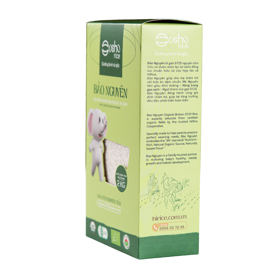 Bảo Nguyên là gạo ST25 nguyên tấm hữu cơ được HiRice cùng bà con hợp tác xã chọn lọc từ những cánh đồng lúa canh tác chuẩn hữu cơ.